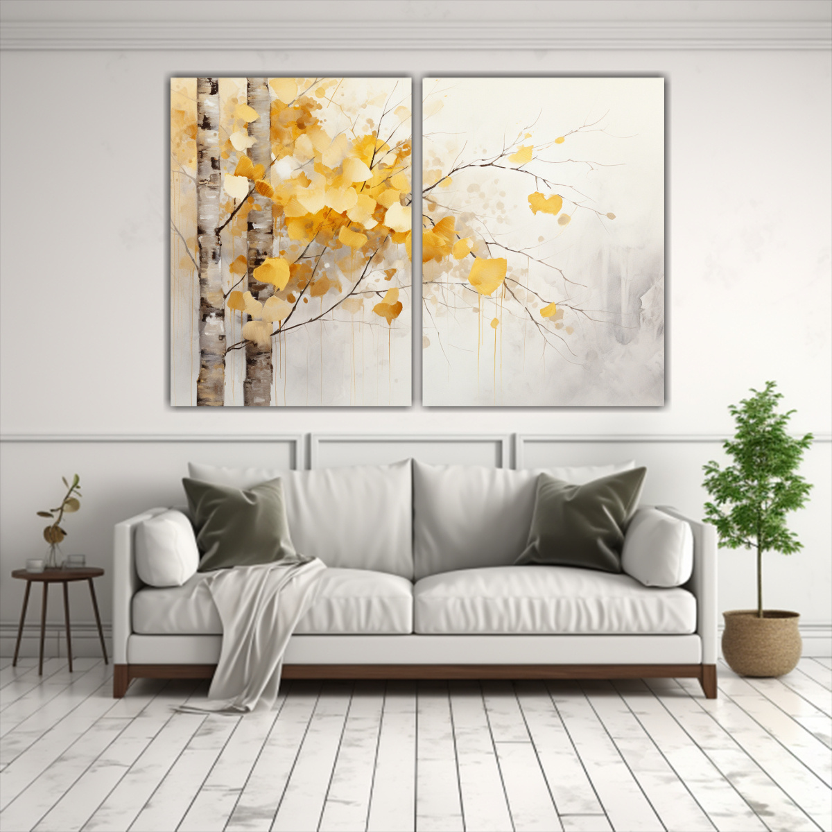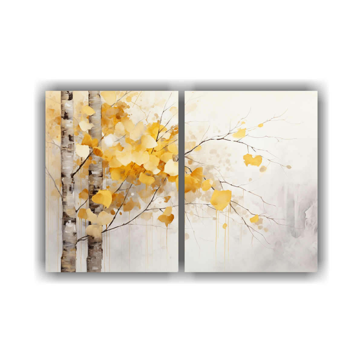 Arte De Pared Líneas Calma Árbol Aspen Oro