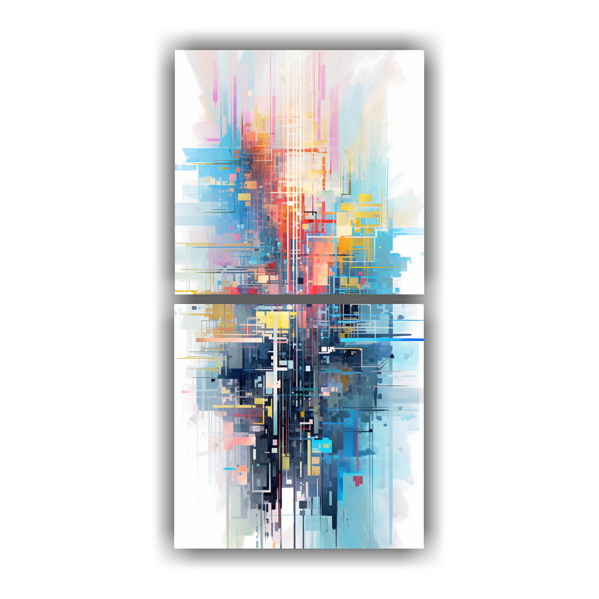 DecoCuadros ofrece una amplia variedad de diseños exclusivos de cuadros decorativos impresos en tela de alta calidad con bastidores de madera Nuestro cuadro ‘Arte de Pared Luminoso Abstracto: Fusión de arte y tecnología pixelada’ presenta una combinación de colores vibrantes como el azul marino grisáceo, beige, turquesa, carmesí, coral, lila y plateado Aporta un toque moderno y sofisticado a cualquier espacio