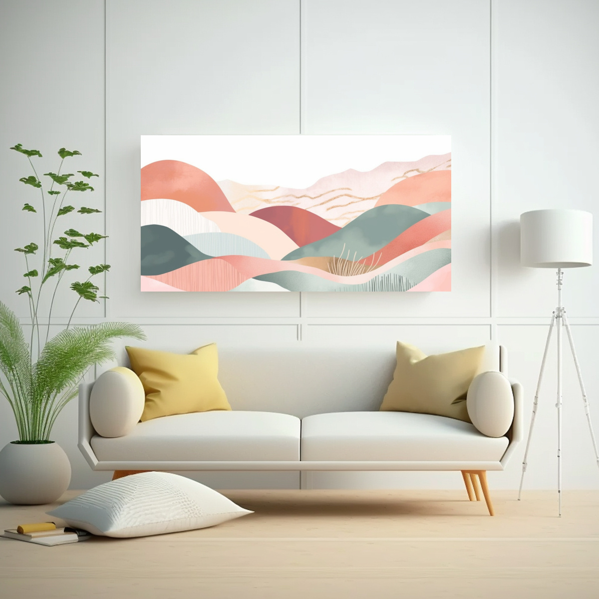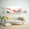 Este hermoso cuadro minimalista abstracto sería perfecto para decorar una sala de estar o un dormitorio con una paleta de colores cálidos Puedes colocarlo sobre un sofá o una cama, combinando con cojines en tonos coral, beige y gris Completa la decoración con cortinas en tonos plateados o lilas y obtendrás un ambiente acogedor y sofisticado