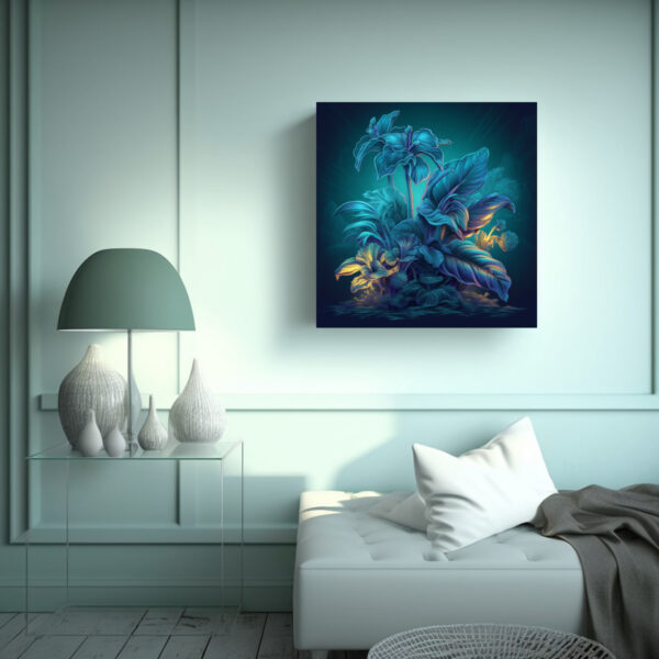 Arte De Pared Original: Planta Tropical Surrealista En Celeste Calido