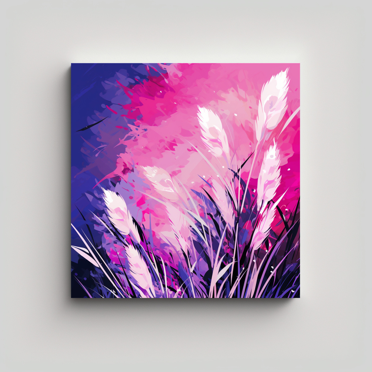 Recomendamos colgar el cuadro Pampas Grass en Tonos Morado y Rosa en una pared de tonos neutros, como blanco o gris claro, para resaltar su belleza y crear un contraste armónico Este cuadro se verá ideal en salas de estar, dormitorios o espacios de trabajo, aportando un toque de color y estilo a la decoración Combínalo con muebles de líneas simples y textiles en tonos suaves para lograr una atmósfera elegante y moderna