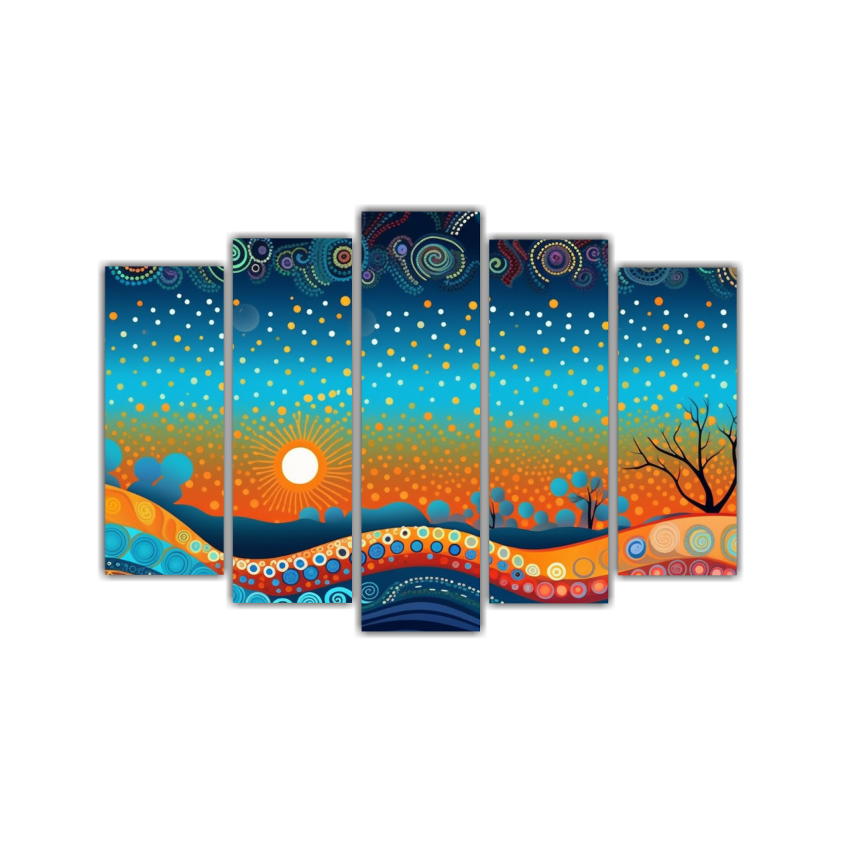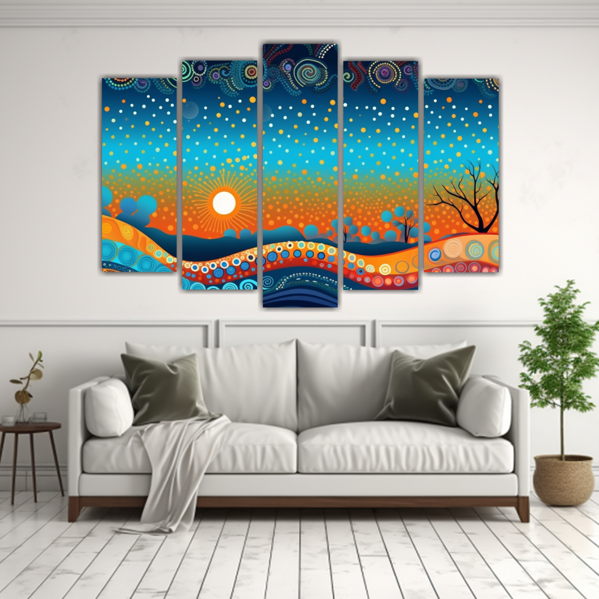 Este cuadro Arte de Pared Patron Intenso Linda Aboriginal Caminata en Sueños se vería espectacular en tu sala de estar sobre un sofá de color neutro o en una pared de tonos claros para resaltar sus colores vibrantes ¡Atrévete a darle un toque único a tu hogar con esta obra de arte!