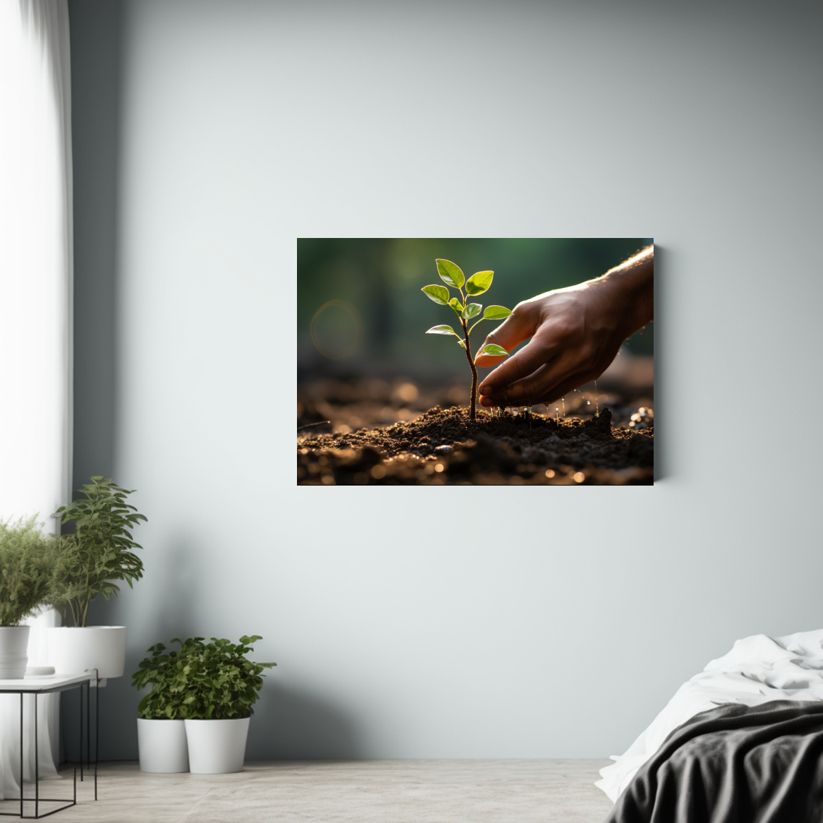 Renueva tu hogar con este cuadro de alta resolución donde una persona planta un árbol Dale un toque de naturaleza y esperanza a tu espacio con este diseño único Ideal para salas, oficinas o espacios de relajación Envíos express a regiones disponibles