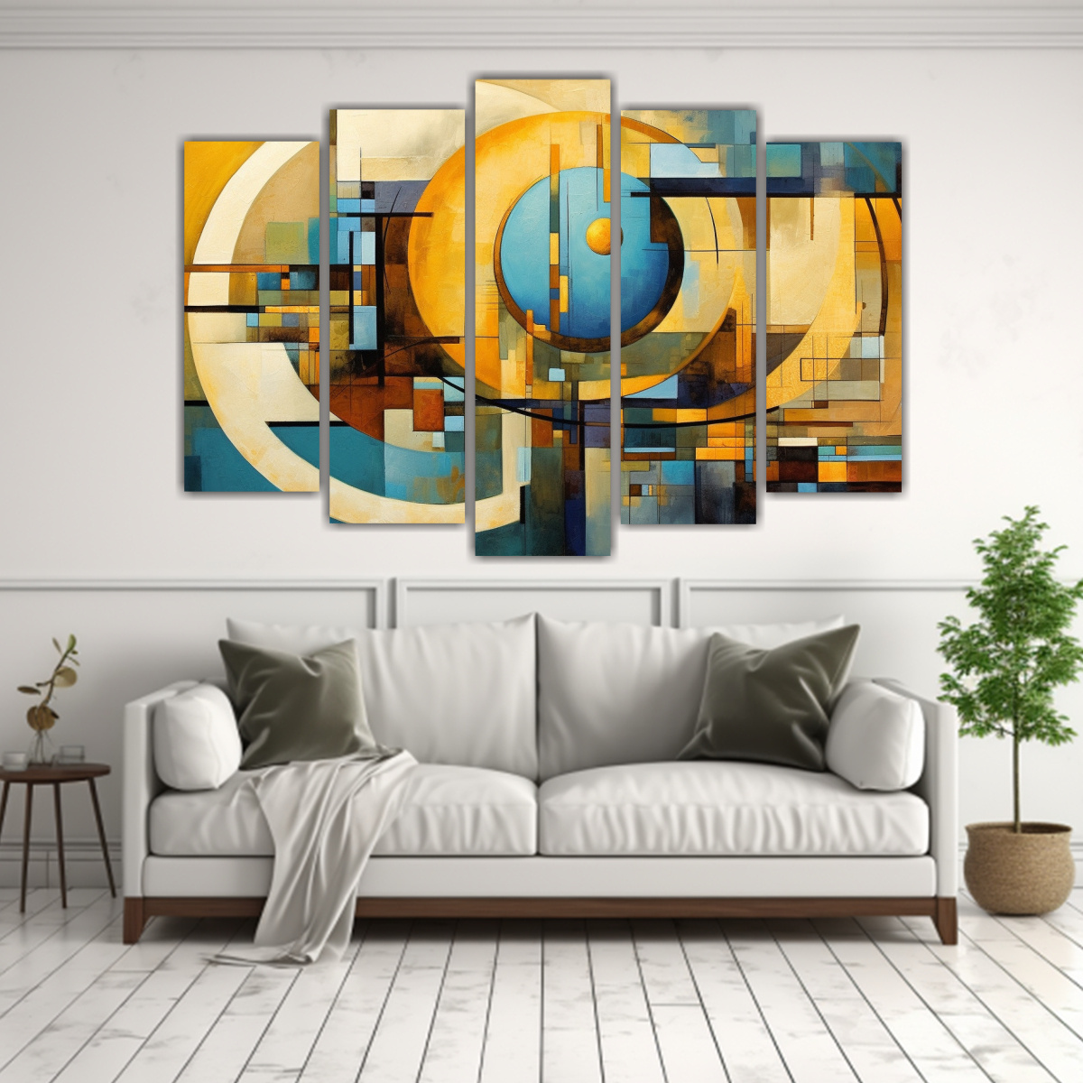 Arte De Pared Tela Canvas Con Diseño Circular Azul Y Marrón
