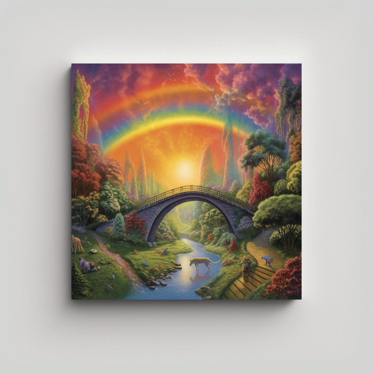 Coloca el cuadro Rainbow Bridge en la pared principal de tu oficina para crear un punto focal y combínalo con muebles en tonos neutros para resaltar la intensidad de los colores ¡Aportará armonía y vitalidad a tu ambiente laboral!