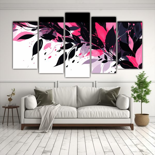 Este cuadro Cinco Alegría en colores negro y rosa con atmósfera neonoir se verá espectacular en tu sala de estar, combinándolo con muebles y accesorios en tonos grises y negros para lograr un ambiente sofisticado y elegante Puedes colocarlo sobre un sofá o en una pared vacía para crear un punto focal que llame la atención de tus invitados ¡No esperes más y adorna tu espacio con este hermoso cuadro!