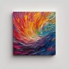 Recomendamos colocar este cuadro en un salón o estudio, combinándolo con muebles de colores neutros para resaltar su vibrante paleta de tonos azules, naranjas y morados También puede ser una excelente opción para darle vida a un dormitorio o sala de estar con una decoración moderna