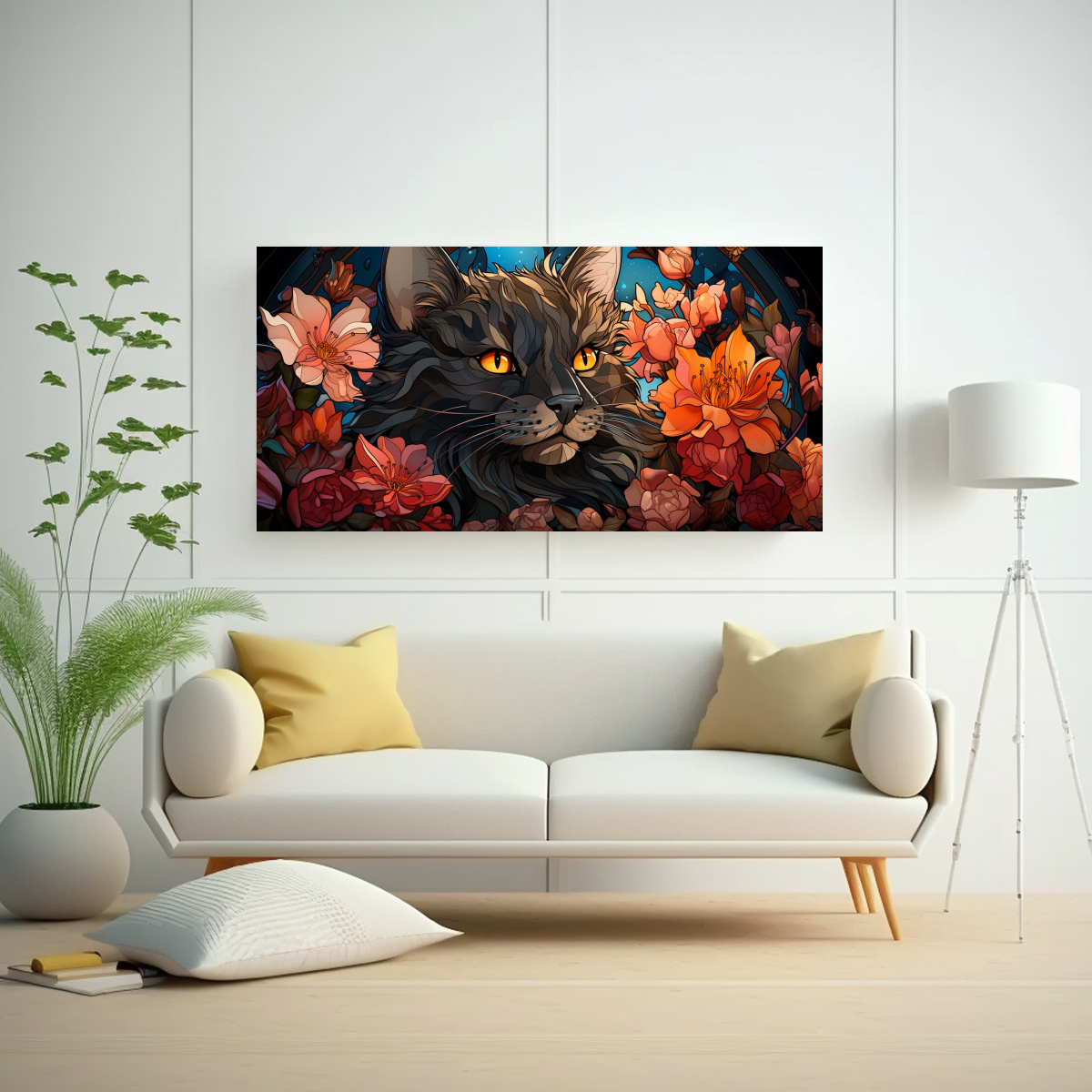 Este cuadro es perfecto para colocar en la sala de estar, sobre un sofá de color neutro para resaltar los tonos vibrantes de la obra Añade cojines en tonos turquesa y coral para lograr una armonía en la decoración de tu ambiente