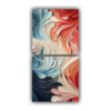 DecoCuadros te presenta su cuadro abstracto ‘Arte dinámico con patrones abstractos inspirados en la vibrante composición de Dos Lienzos’ Este cuadro posee una combinación de colores vibrantes como Coral, Azul Marino grisaceo, Turquesa, Dorado, Menta, Carmesí, Verde Azulado y Plateado, creando una composición dinámica y llena de energía