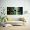 Coloca este cuadro de personas caminando bajo la lluvia en tu comedor para crear un ambiente relajante y sofisticado Combínalo con muebles de tonos neutros como blancos, grises o beige para resaltar el impacto de los colores del cuadro Agrega elementos de decoración en tonos dorados para darle un toque de elegancia ¡Te encantará el resultado!