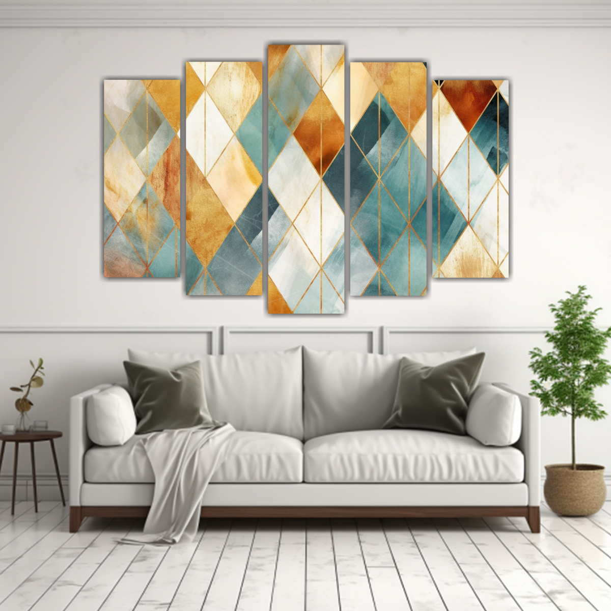 Este cuadro quedará perfecto en tu sala de estar junto a muebles de tonos neutros y dorados para crear un ambiente sofisticado y moderno ¡Combínalo con cojines en tonos coral y menta para un look armonioso!