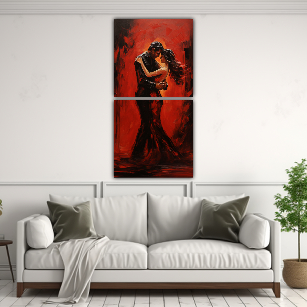 Este cuadro se vería espectacular en una sala de estar minimalista, donde los tonos de gris y negro predominen en la decoración Colócalo sobre un sofá blanco o gris claro para crear contraste y atraer todas las miradas Complementa con cojines y cortinas en tonos carmesí y plateado para darle vida a la habitación ¡Será el centro de atención y transmitirá toda la pasión del tango a tus invitados!