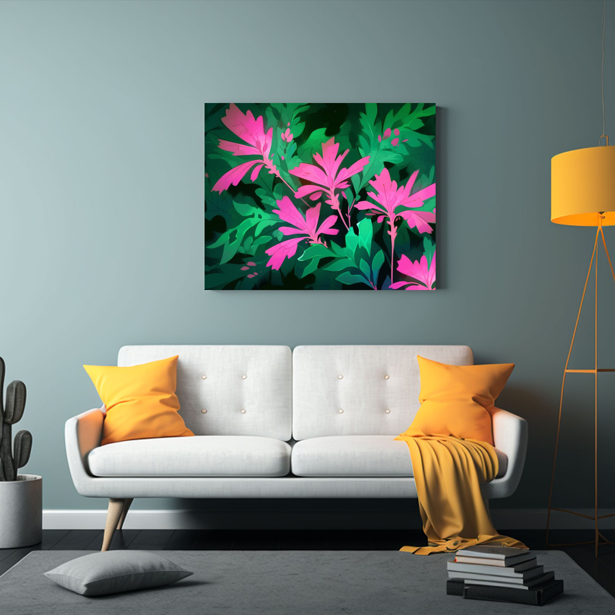 Coloca este cuadro en el centro de tu sala para crear un punto focal y combínalo con muebles en tonos neutros para resaltar su belleza También puedes ponerlo en un espacio de trabajo para inspirarte con sus colores vibrantes y su estilo neo-noir