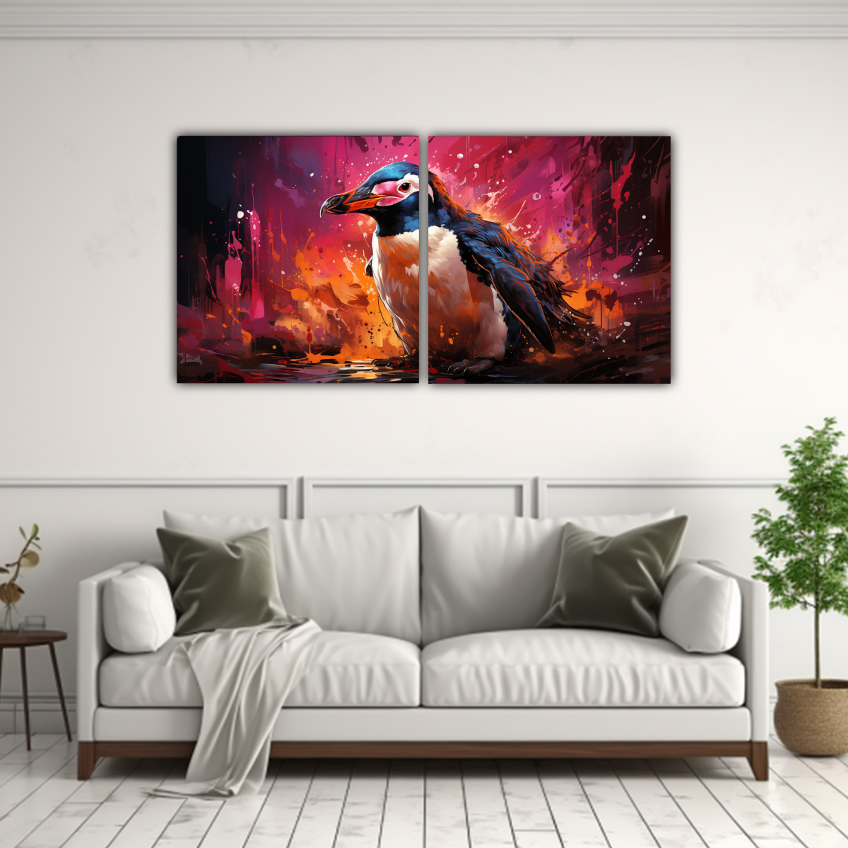 Este cuadro de un pingüino en colores fucsia y tinta sería perfecto para darle vida a tu sala de estar Colócalo sobre un mueble blanco para resaltar los tonos y combínalo con cojines en colores gris y turquesa para crear un ambiente moderno y vibrante