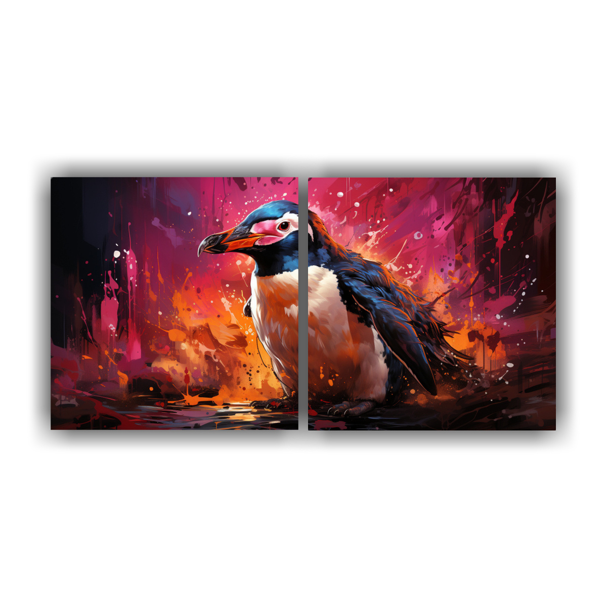 Renueva tus espacios con este cuadro de pingüino en colores fucsia y tinta, con tonos coral, negro, carmesí, plateado y más Ideal para salas, dormitorios o espacios creativos La mejor calidad y precios del mercado en DecoCuadros