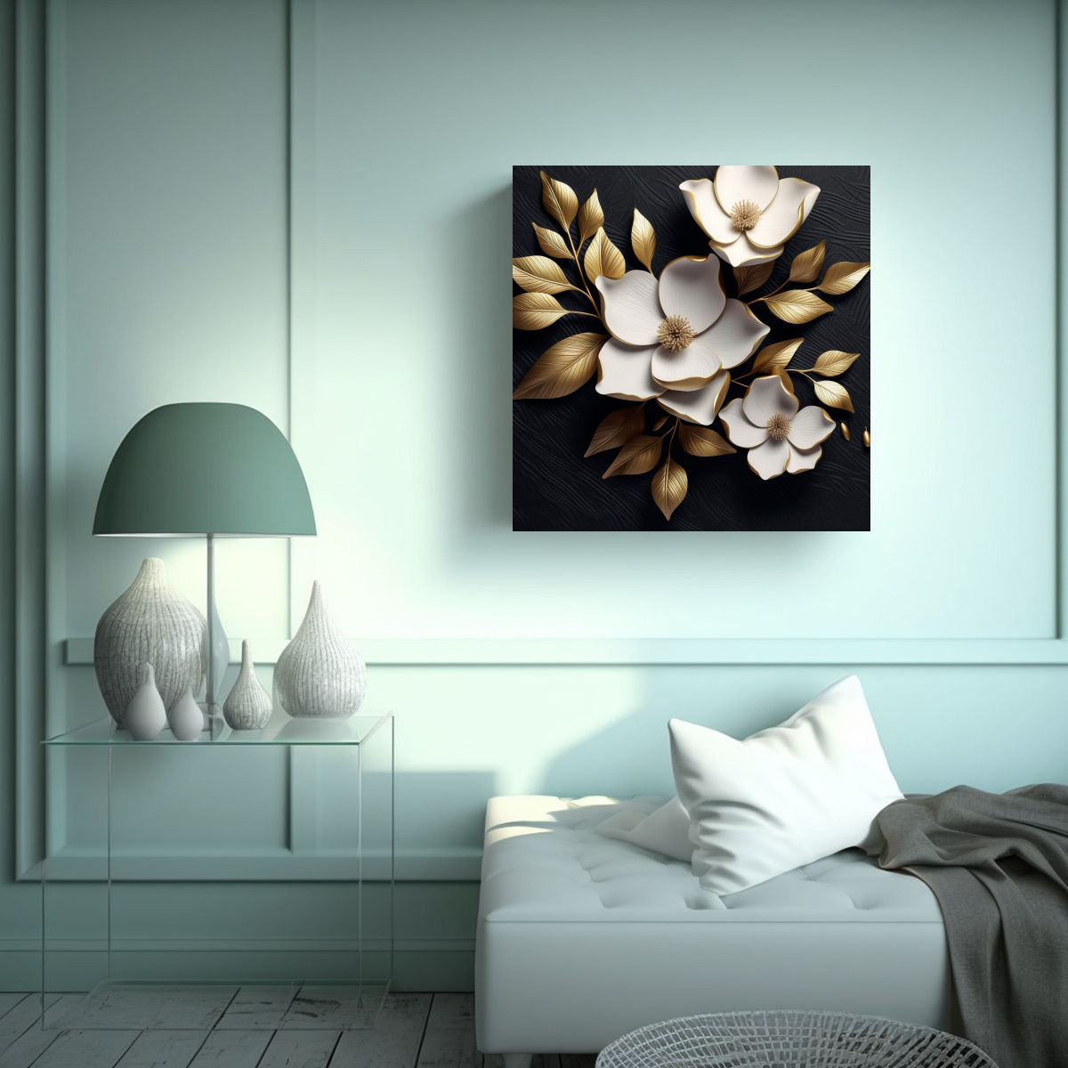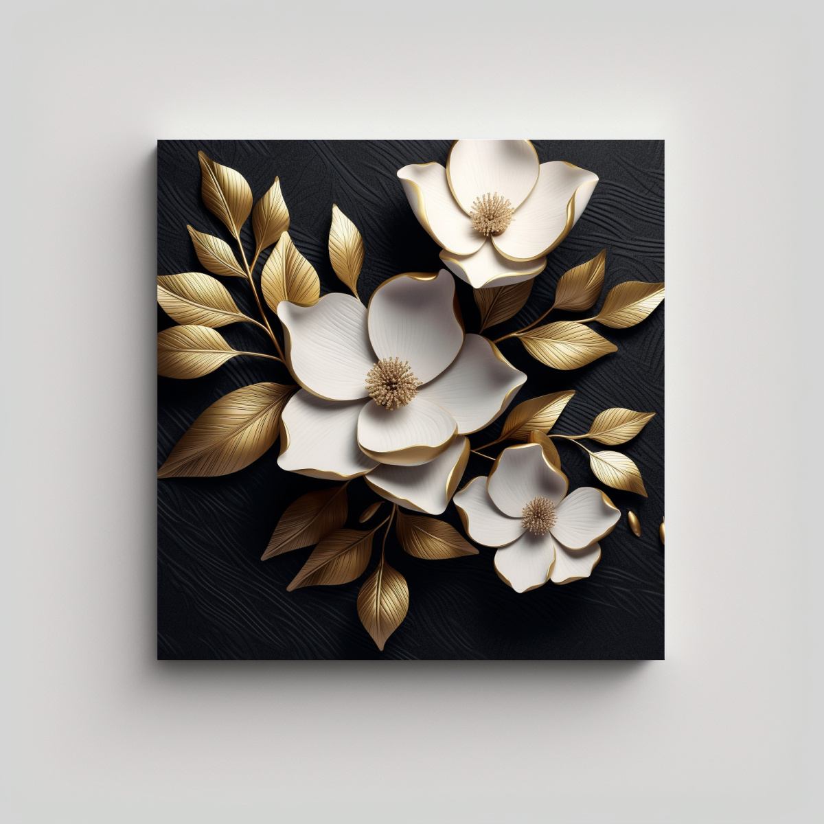 Arte Moderno De Pared 3D Magnolia Dorada Con Detalles Negros