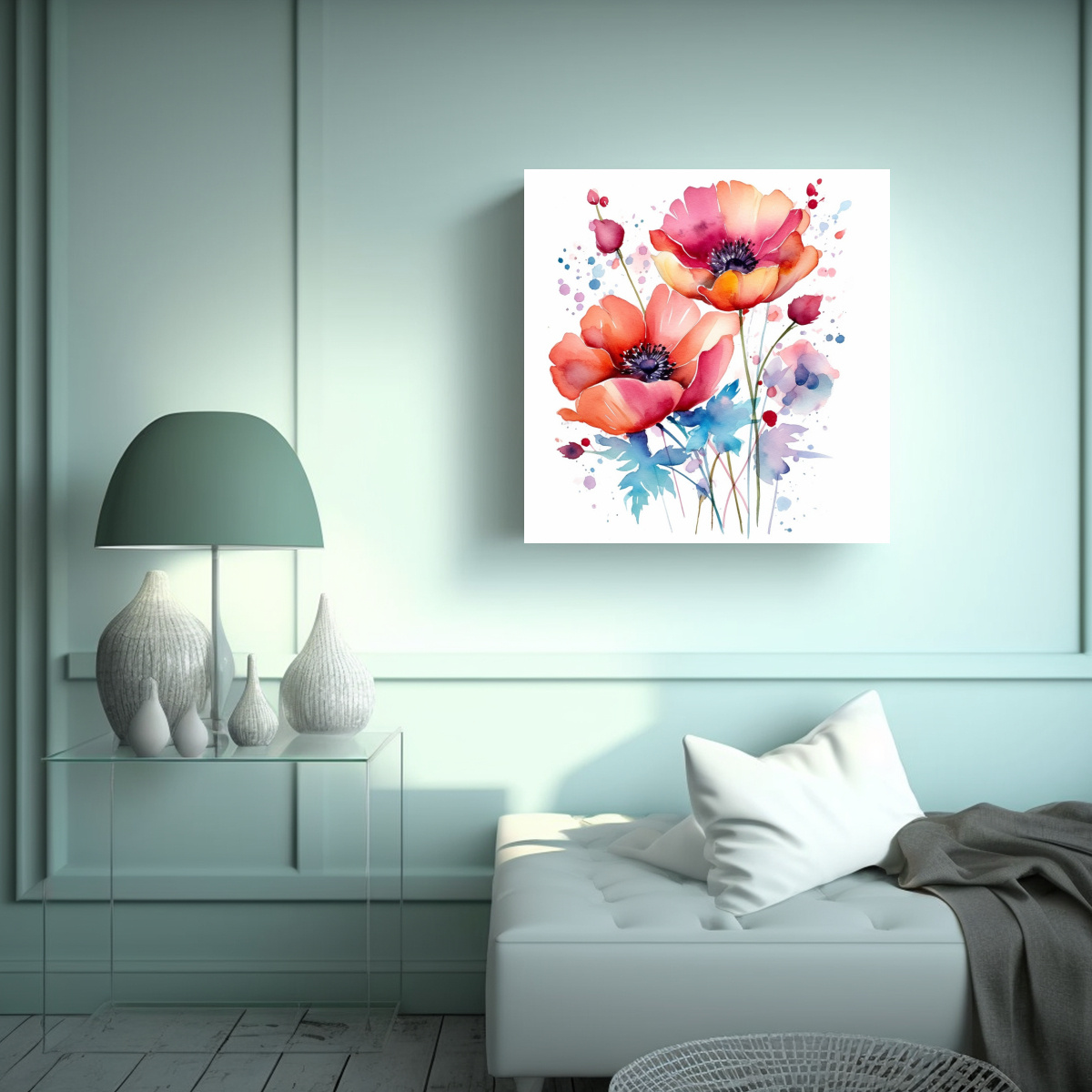 Arte Moderno Flores Acuarela Intenso Movimiento Pared Blanco