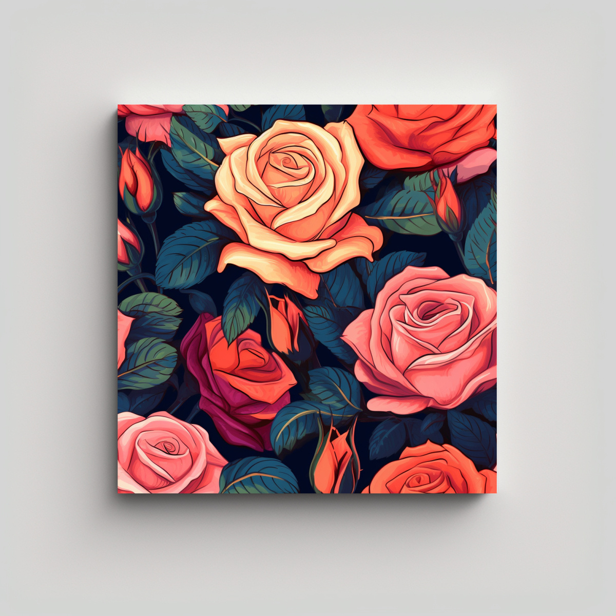Arte Mural Colorido De Rosas, Lienzo Decorativo Armonioso