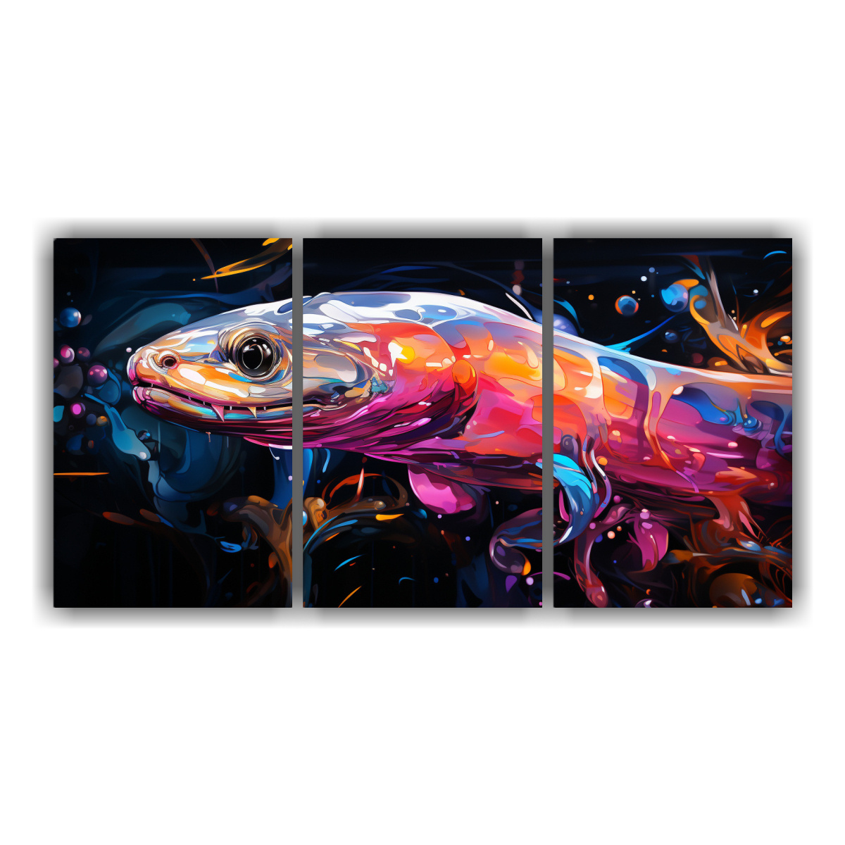 Arte Mural Impreso De Anguilas En Colores Iridiscentes Y Carbón Neo Pop Art.