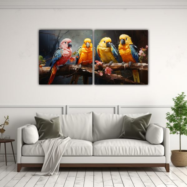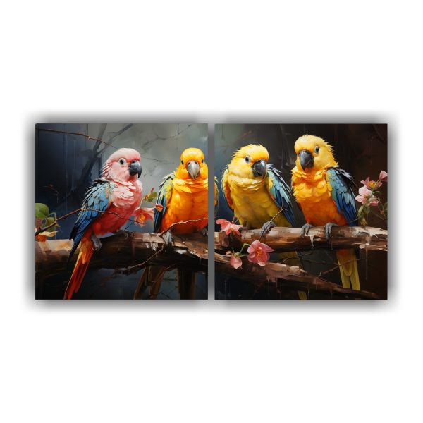 Este cuadro de canarios en estilo Estilo óleo colorido sería perfecto para colocar en la sala de estar, creando un punto focal vibrante Combínalo con muebles en tonos neutros para que resalte y añada calidez a la habitación ¡Una pieza única para impresionar a tus invitados!