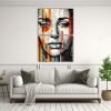 Arte Pared Mujer Rostro Líneas Colores Detalle Rosa