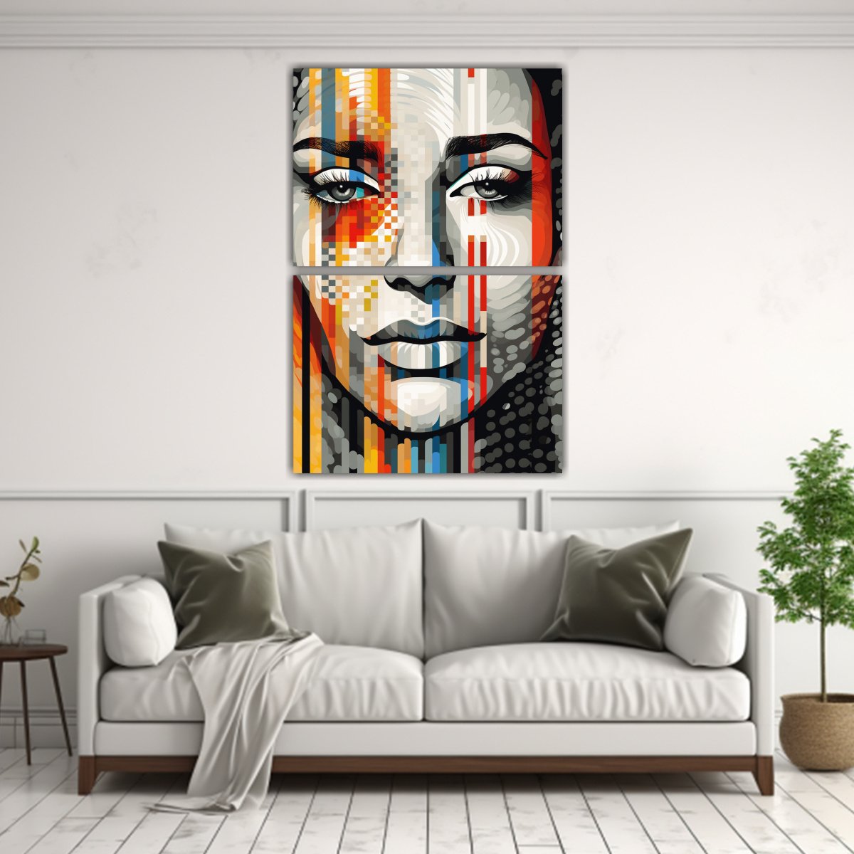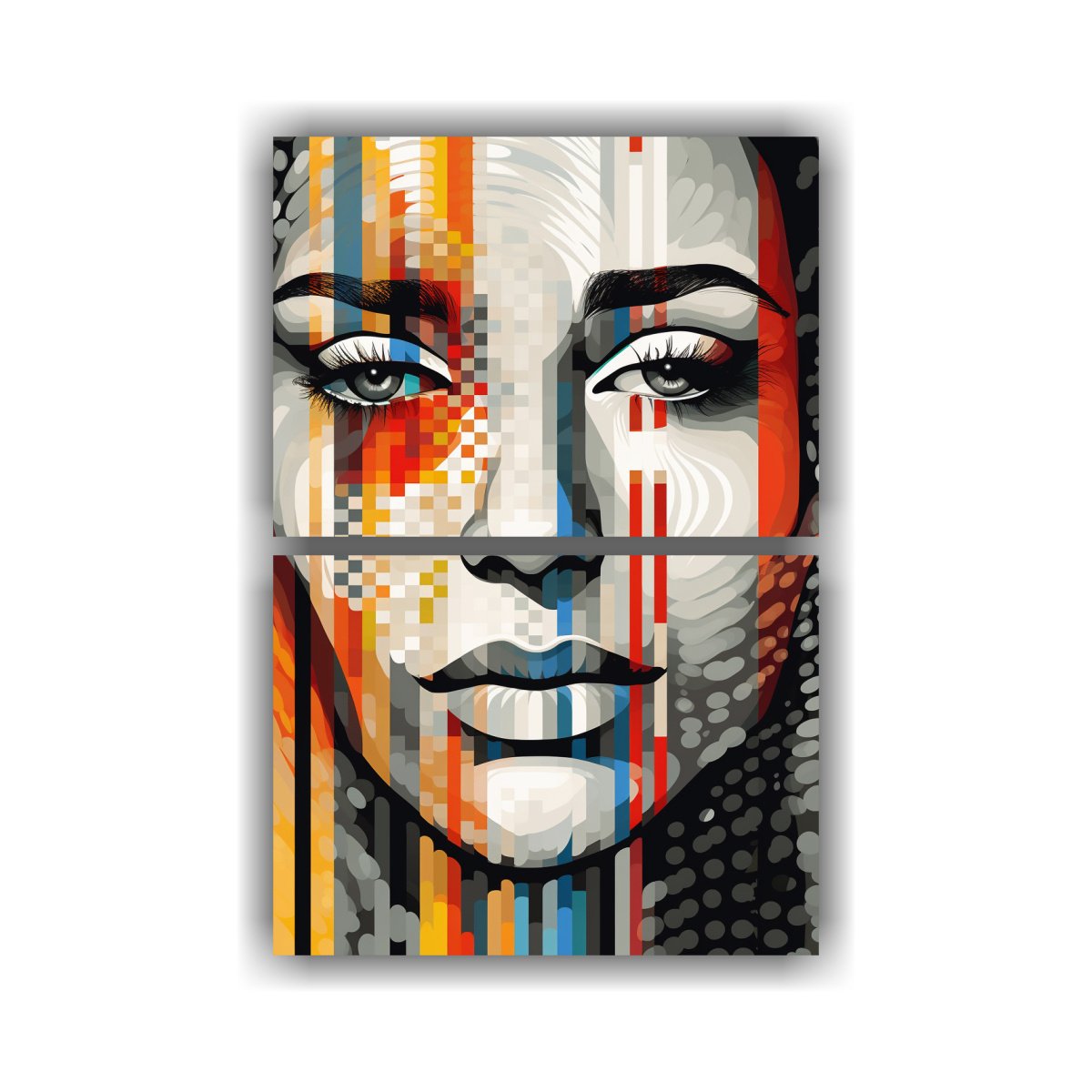 Decora tus espacios con el cuadro Arte Pared Mujer Rostro Líneas Colores Detalle Rosa, una pieza de arte en tonos azul marino, carmesí, plateado, coral, gris, beige, turquesa y menta