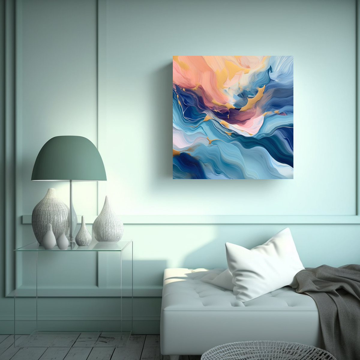 DecoCuadros te ofrece el cuadro Arte Serenidad Profunda: Líneas y Composición Abstracta con los colores Rosado Claro, Turquesa, Azul Marino grisaceo, Verde Azulado, Plateado, Gris y Coral Nuestros diseños exclusivos y la mejor calidad del mercado a precios accesibles Entrega gratuita en Santiago y envíos express a regiones