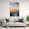 Arte vidrio acrílico abstracto amanecer, patrón intenso en tonos azules y dorados Complementa tu comedor con estilo y elegancia Envíos express a regiones