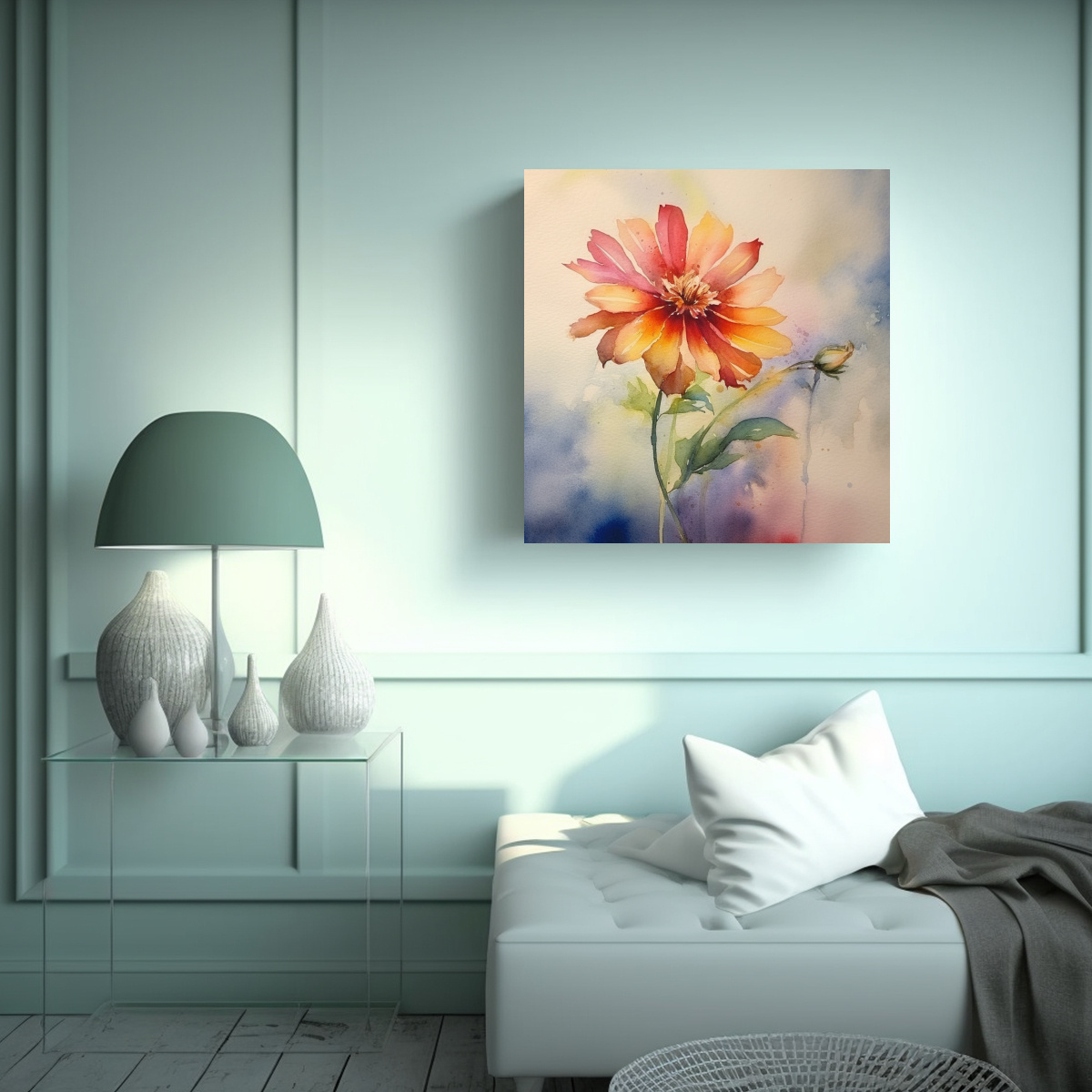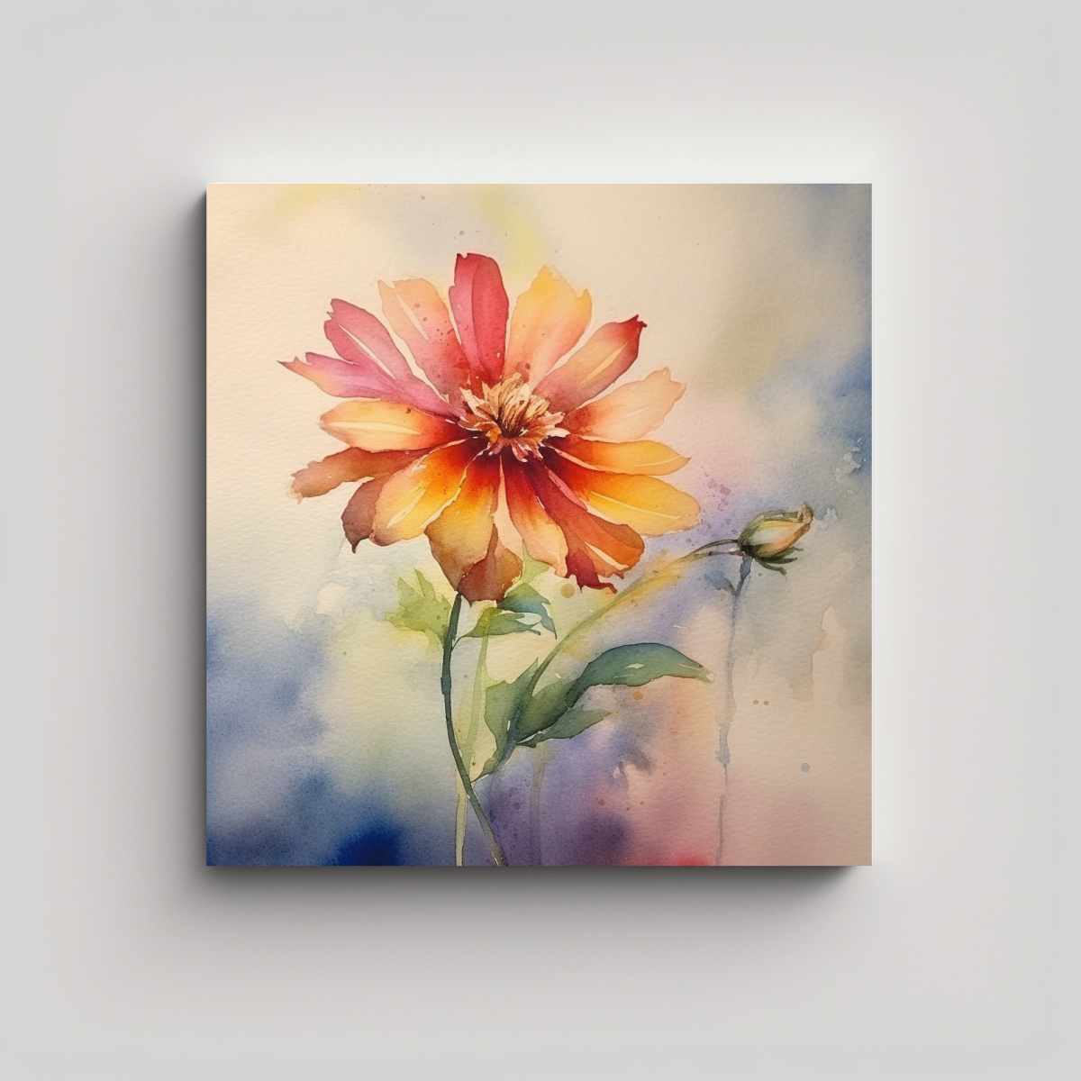 Arte Vintage Unica Flor Acuarela Composición Equilibrada Cuadro