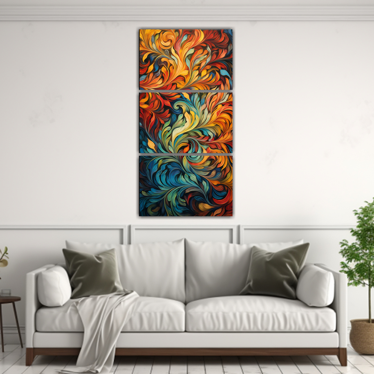 Este cuadro es ideal para decorar salas de estar o comedores, ya que su composición vibrante de patrones abstractos le dará vida a estos espacios Puedes combinarlo con muebles en tonos neutros como gris o blanco, para resaltar aún más su belleza Además, puedes colocarlo en una pared de acento para crear un punto focal en la habitación ¡Atrévete a darle un toque de color y estilo a tu hogar con este cuadro de DecoCuadros!