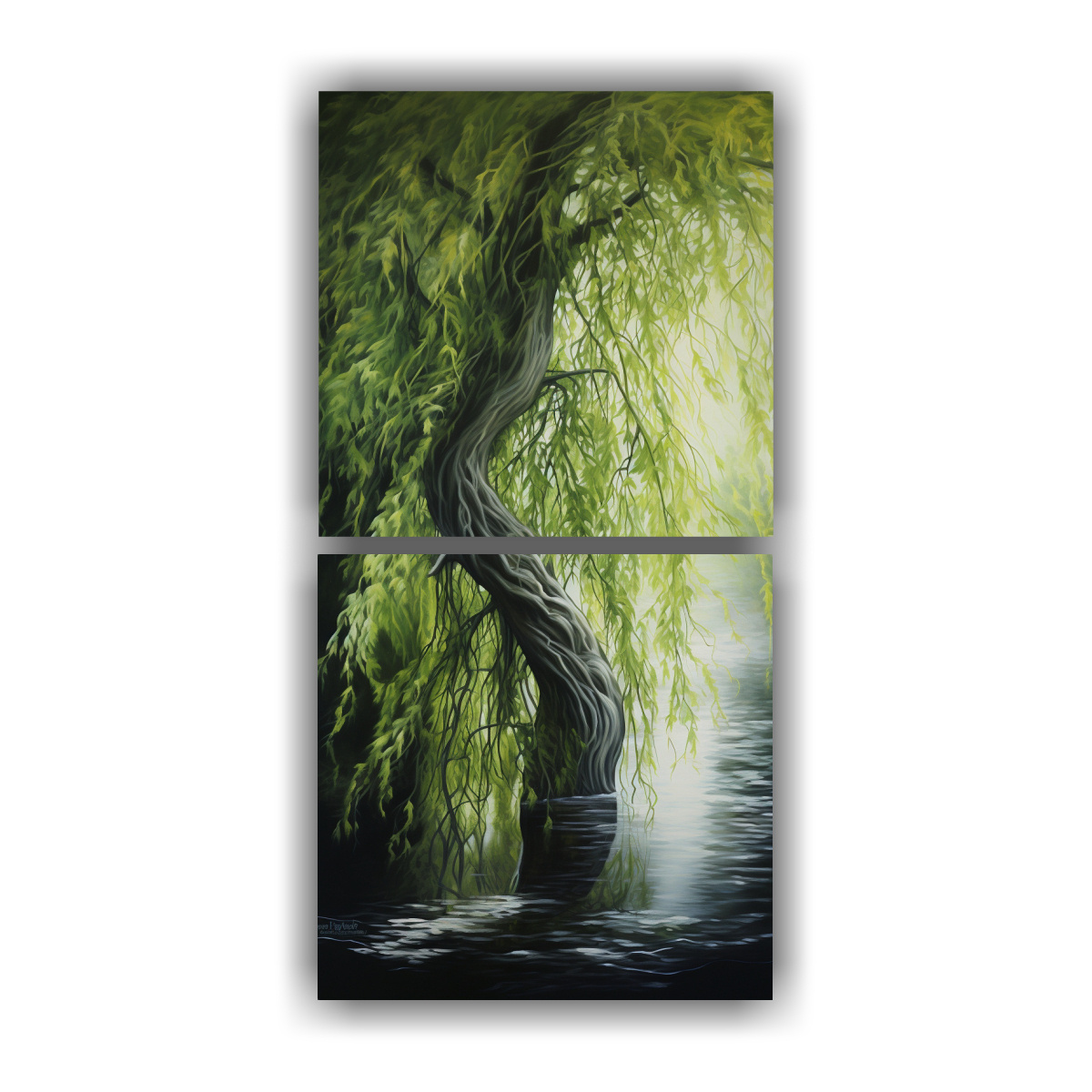 Artes De Pared Fotografía Estética Abstracta: Set 2 Pinturas De Árboles Weeping Willow En Estilo Detallado De óleo.