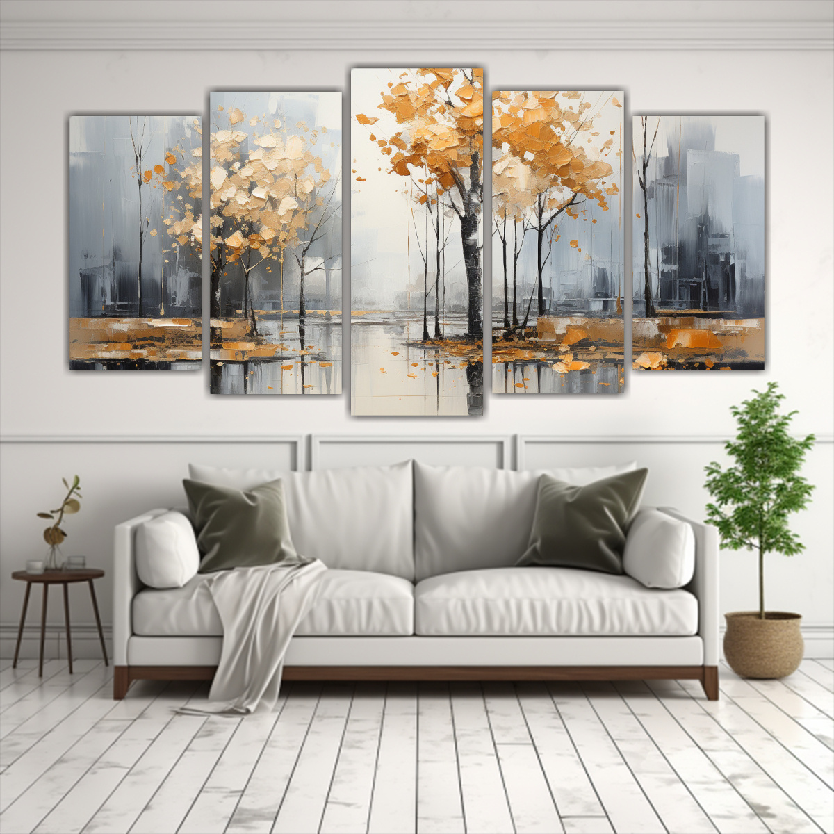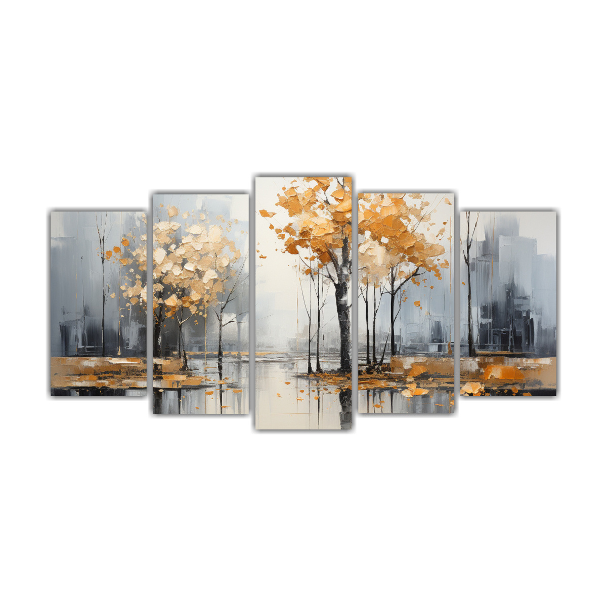 Artes De Pared Impresas: Pintura Abstracta De árboles En Plata Y Blanco