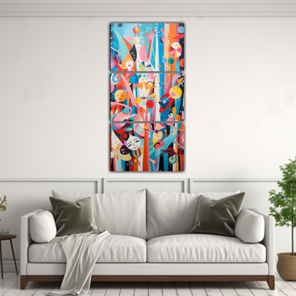 DecoCuadros te ofrece el cuadro de arte abstracto ‘Desfile de Carnaval’ con una representación moderna y colorida Añade un toque de elegancia y originalidad a tu espacio Envío gratis en Santiago y envíos rápidos a regiones