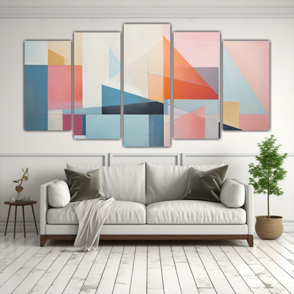 Decora tus espacios con nuestras artes decorativas horizontales geométricas y florales en armonía y paz Conjunto de 5 pinturas en colores plateado, gris, coral, lila y turquesa Diseños exclusivos, entrega rápida y gratuita en Santiago Envíos express a regiones