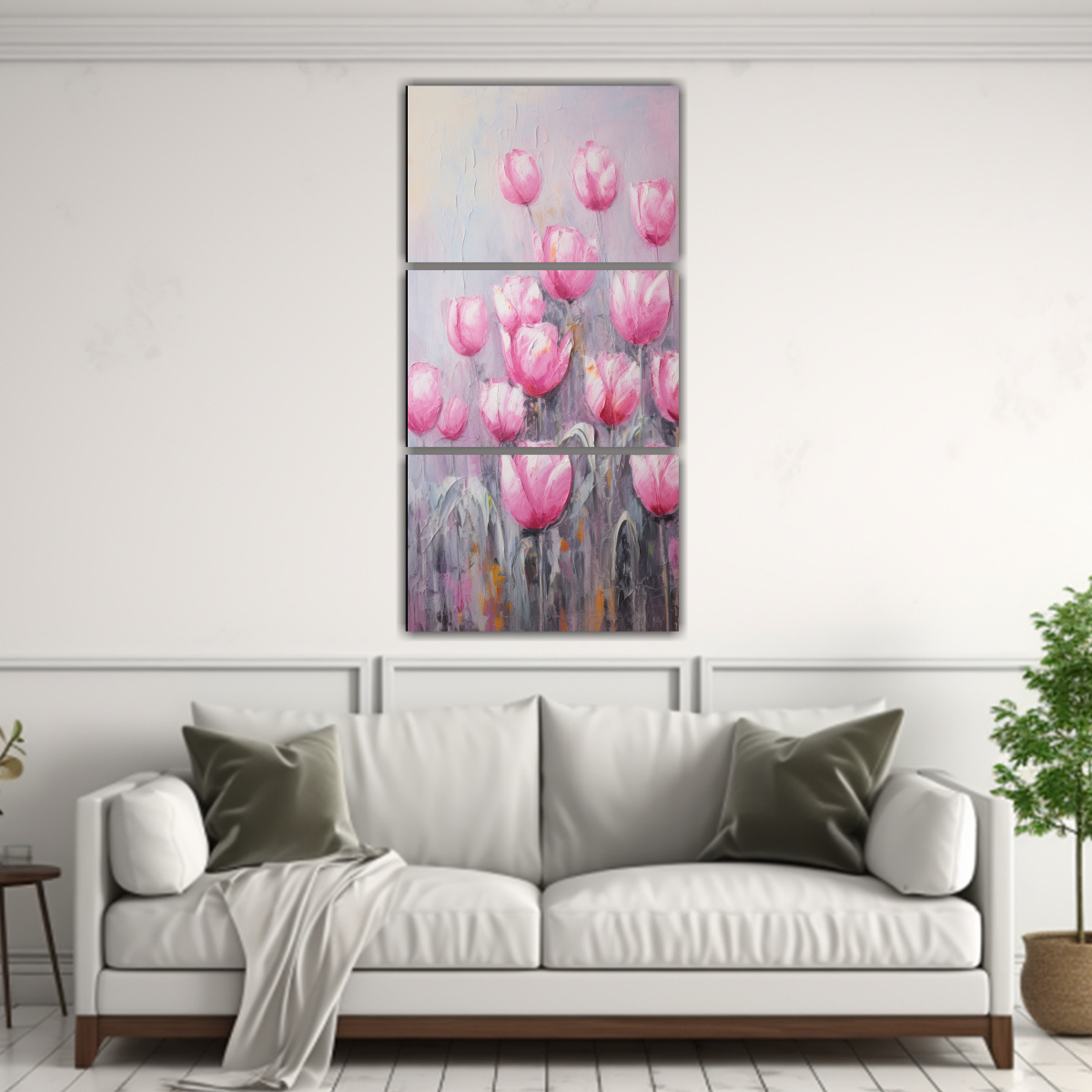 Coloca este cuadro de tulipanes en lienzo estilo decorativo en tu sala de estar o comedor para crear un ambiente elegante y acogedor Combínalo con muebles en tonos neutros como blanco, gris o beige, y añade detalles en dorado para resaltar el brillo de los colores del cuadro También puedes colocarlo en un dormitorio para darle un toque romántico y sofisticado ¡Deja volar tu imaginación y crea espacios únicos con DecoCuadros!