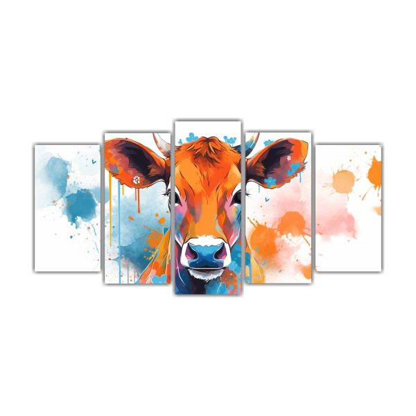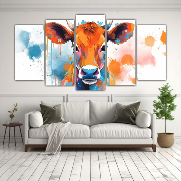 Dale un toque moderno a tu espacio con el Set de 5 Cuadros Vaca Naranja Azul en bastidores de madera Diseños exclusivos y entrega rápida gratuita en Santiago Atrévete a tener arte contemporáneo en casa