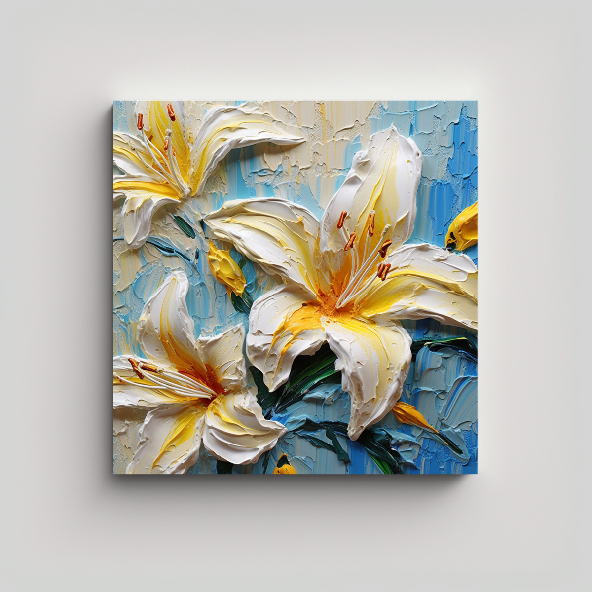 Bastidor De Tela, Lirios Coloridos, Pintura En Amarillo, Arte De Pared