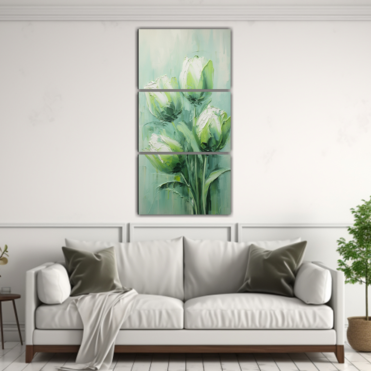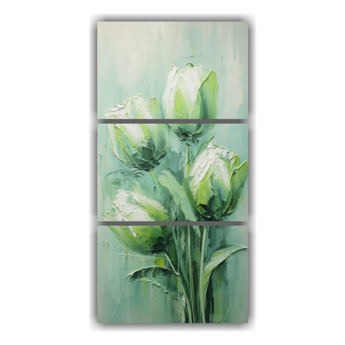 Bastidor Decorativo Textura Tres Telas En Pintura Green TULIPS Al Estilo De