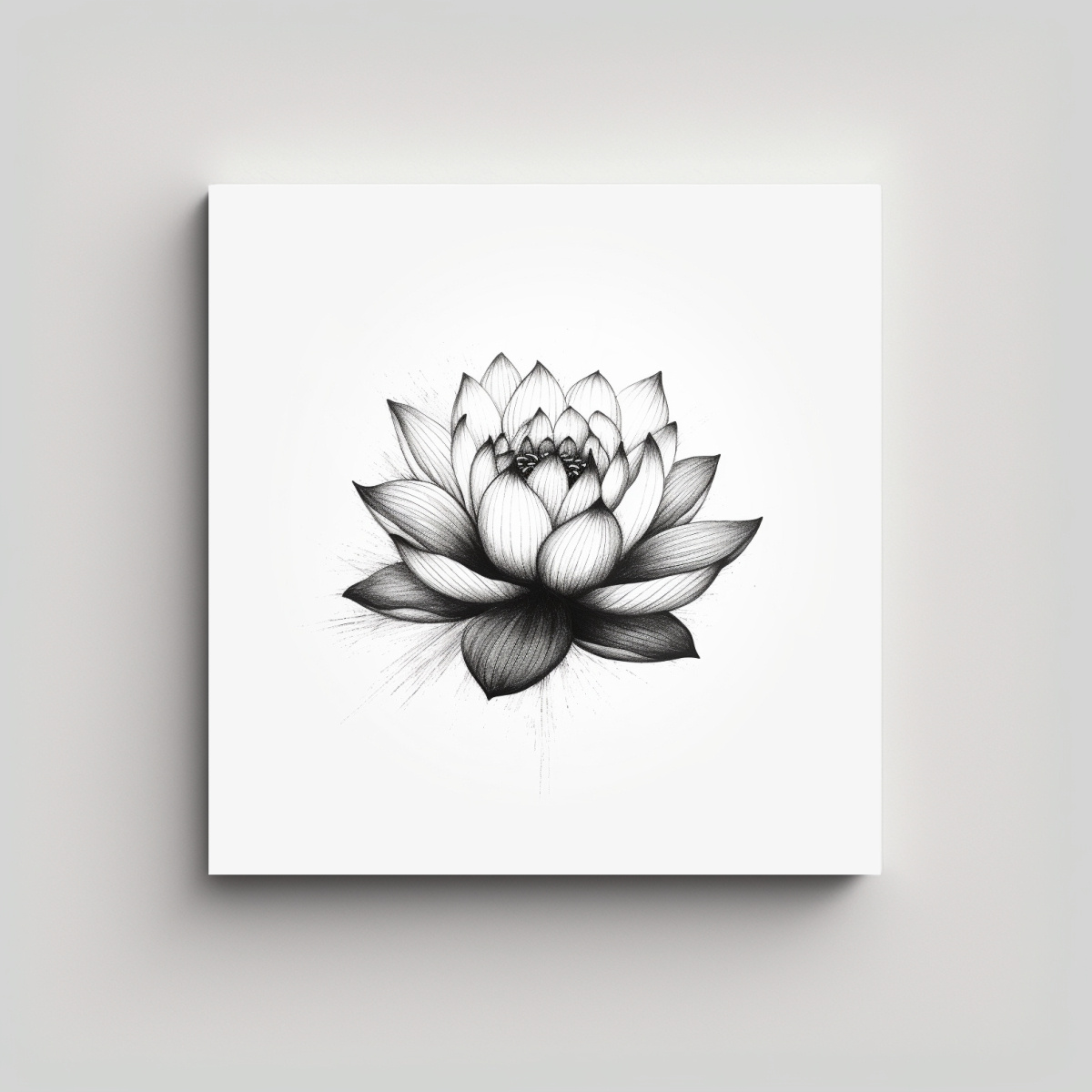 Belleza Natural Cuadro Hermoso Tinta De Loto Estilo Tatuaje