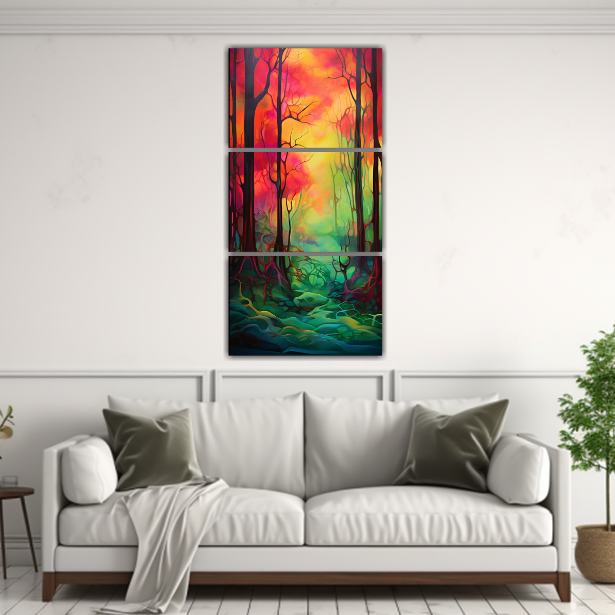 Decora tu hogar con nuestro cuadro Bosque en Tres Lienzos de Tela Creativa Calidad y diseño exclusivo al mejor precio del mercado Envío gratis y entrega rápida en Santiago Añade belleza natural a tu espacio con esta representación abstracta de un bosque en tonos Coral, Gris, Azul Marino grisaceo, Carmesí y Verde Azulado