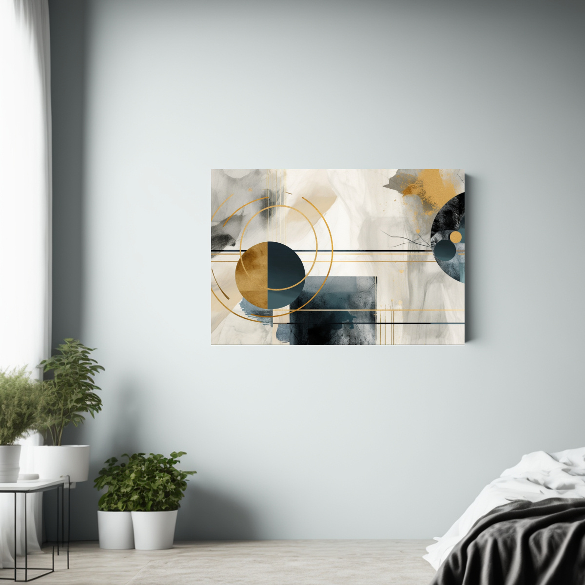 Este cuadro abstracto en tonos negro y azul es perfecto para darle un toque de modernidad a tu sala de estar Colócalo sobre un sofá en tonos claros para lograr un contraste elegante y sofisticado