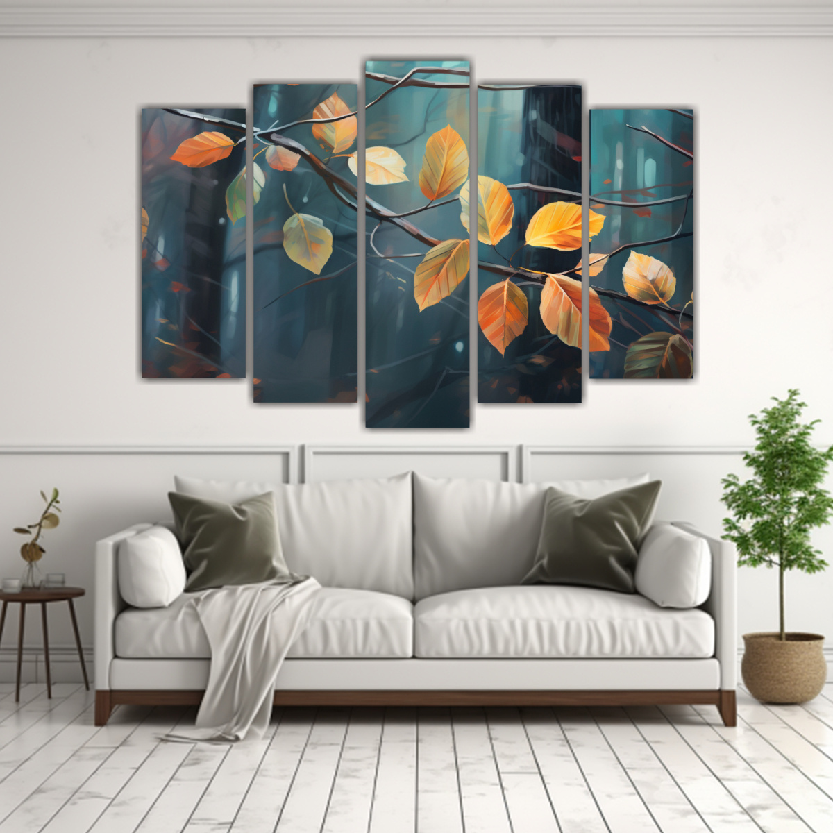 Cinco Cuadros De Tela Con Motivo De Hojas