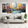 Cinco Cuadros De Tela Expresión Baño De Bosque Sereno
