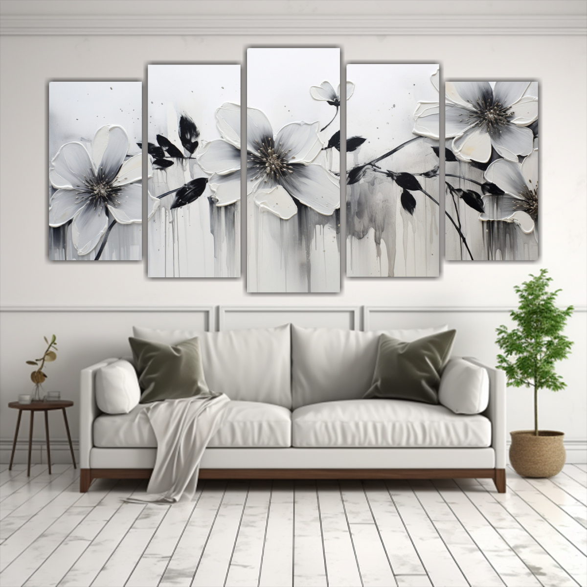 Este cuadro de cinco lienzos abstractos en colores beige, azul marino grisaceo, gris y plateado es ideal para decorar salas de estar modernas o dormitorios minimalistas Puedes colocarlo sobre un sofá en tonos neutros para que sea el punto focal de la habitación También puedes combinarlo con cojines y cortinas en tonos grises y plateados para crear una armonía visual ¡Agrega estilo y elegancia a tus espacios con nuestros cuadros decorativos!