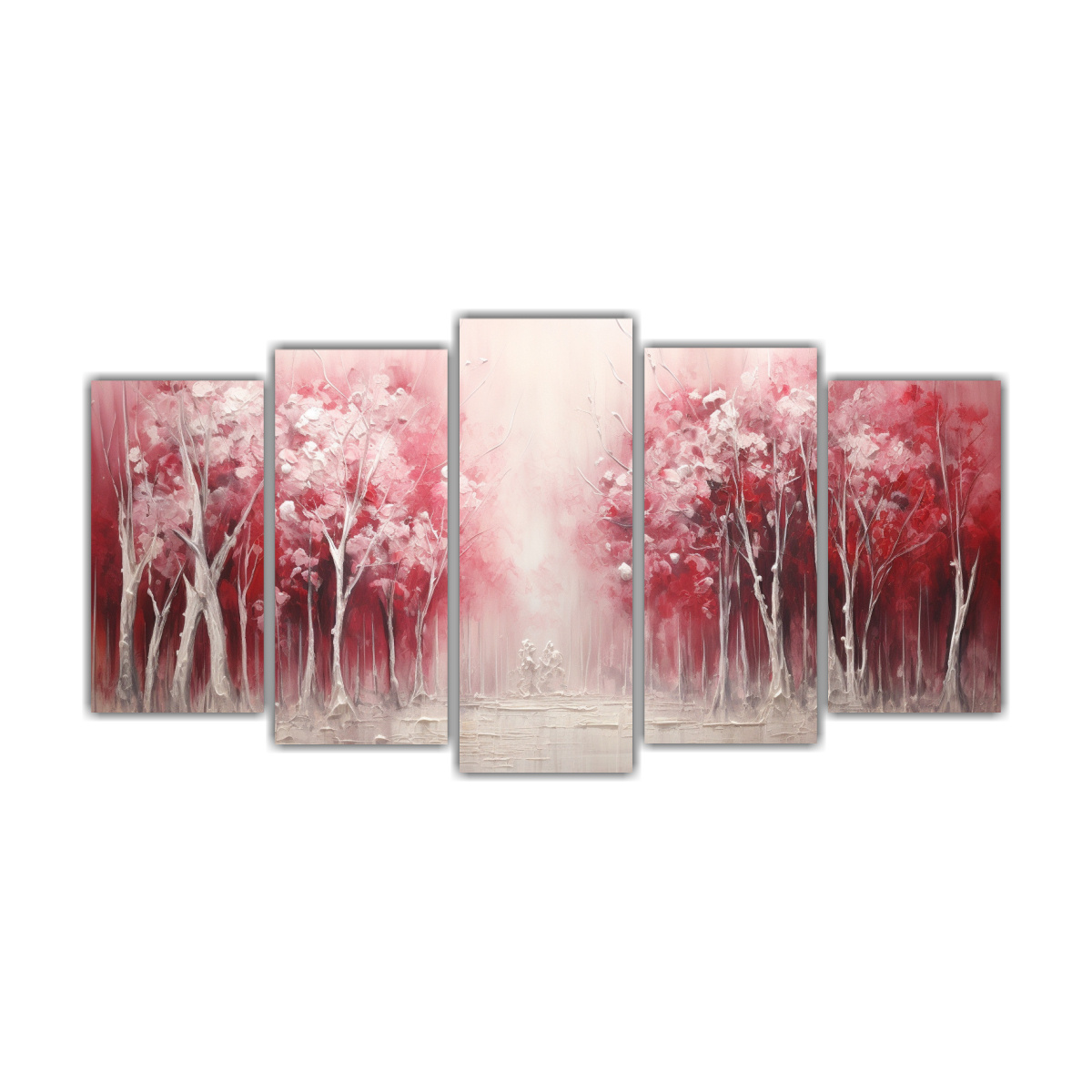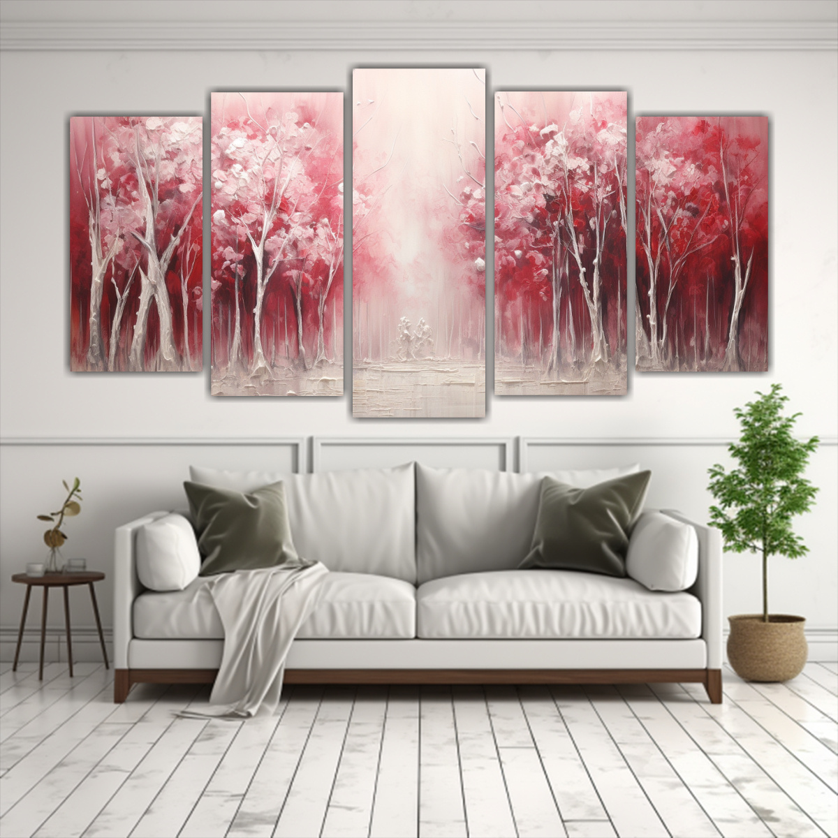 Cinco Lienzos De Tela Cuadro Impresionante En Rojo Y Plateado