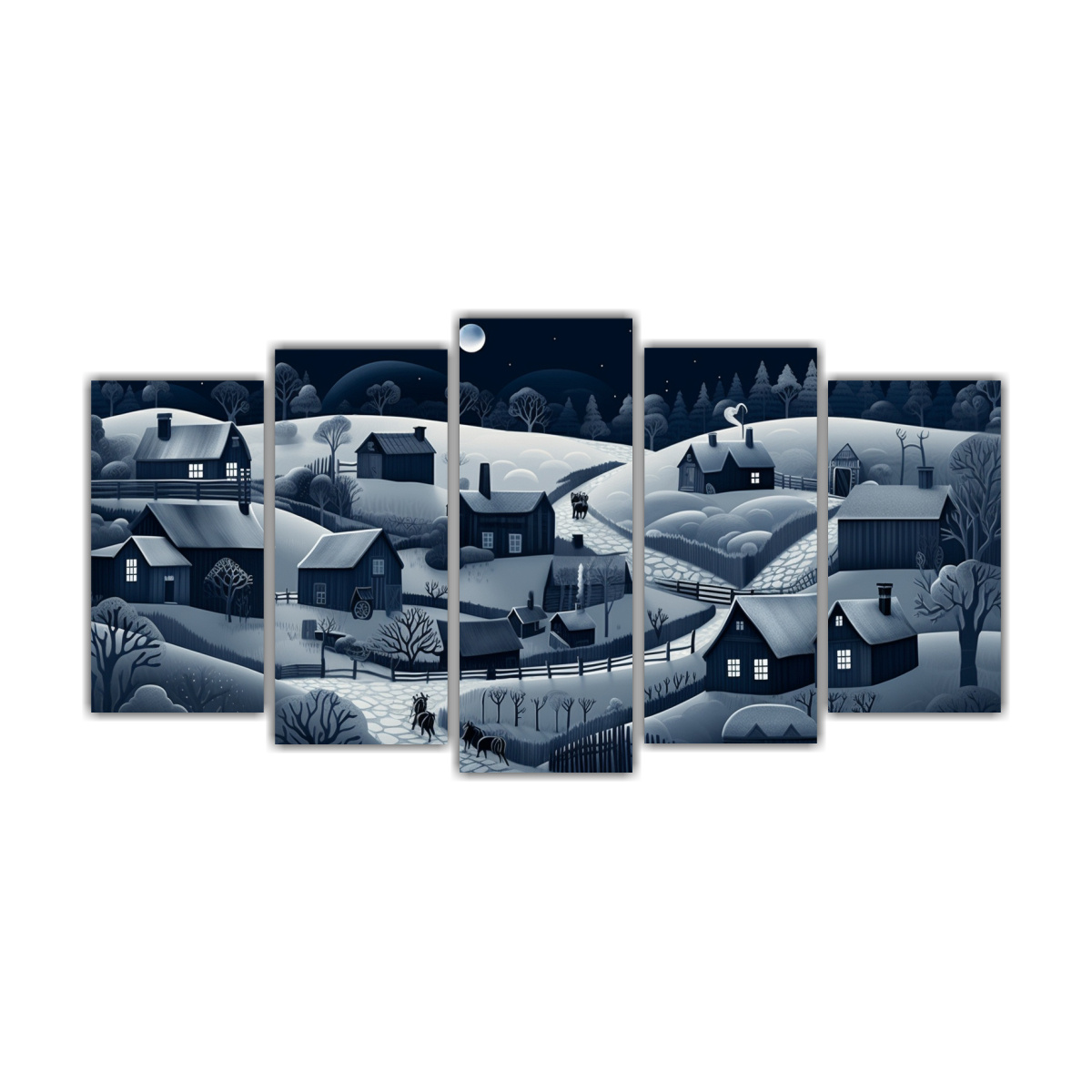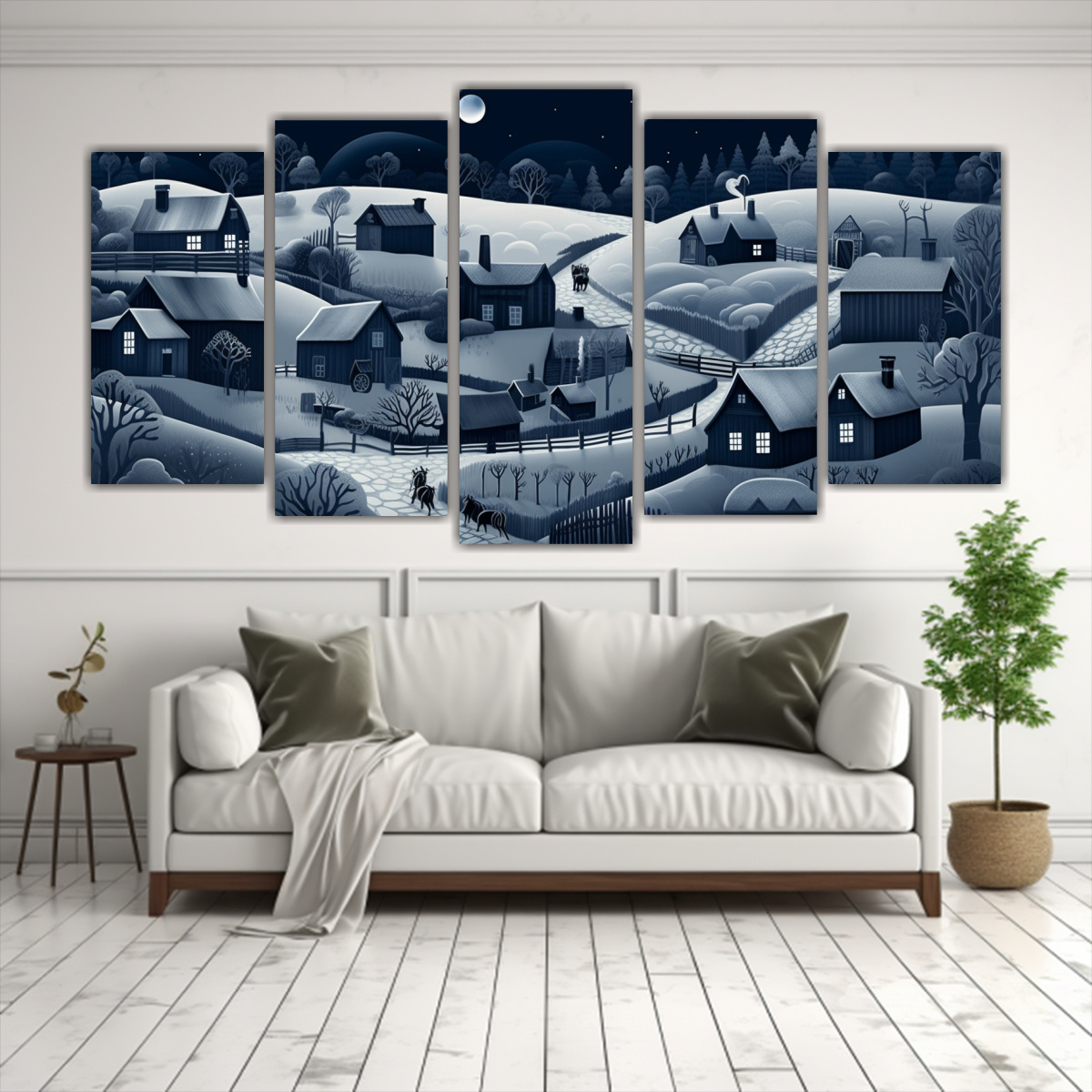 Cinco Lienzos De Tela De Alta Calidad Con Cuadro En Tiza Y Lápiz En Estilo Alegre