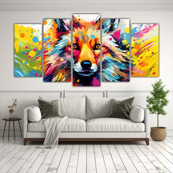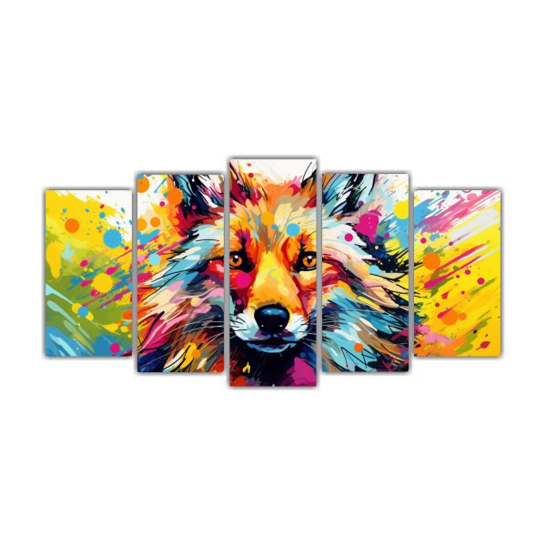 Cinco Lienzos Inspiración Zorro En Luz Y Colores Canarios Neo Pop Art.