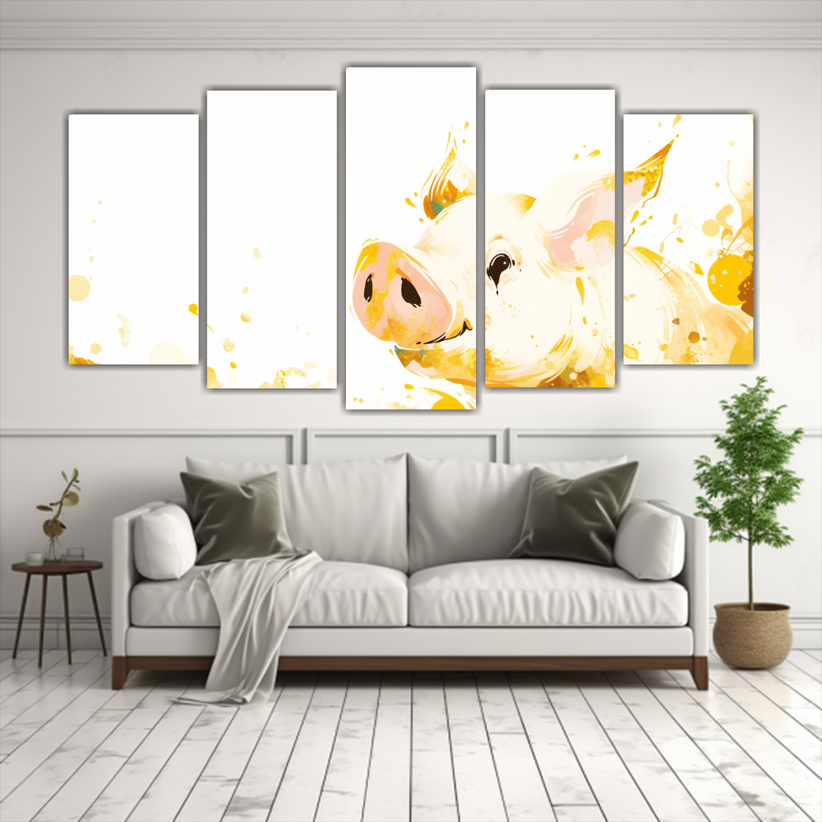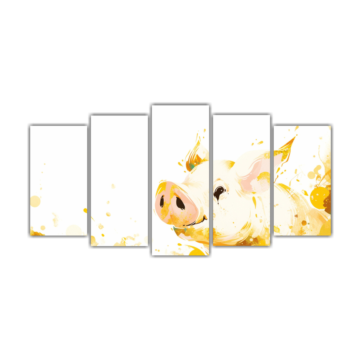 Cinco Lienzos Inspirador Vitalidad Cerdo Blanco Y Oro Arte Pop Neo.