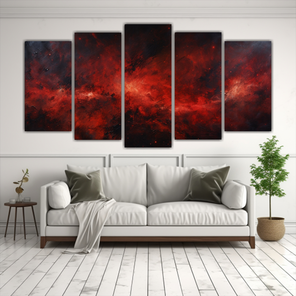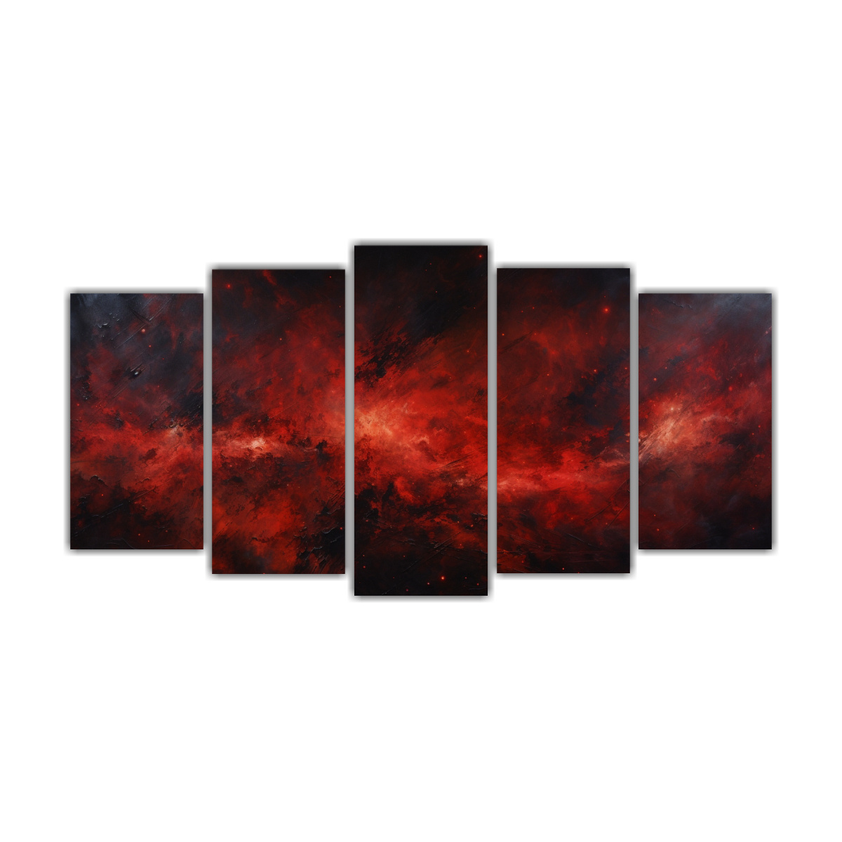 Cinco Lienzos Tela Vintage Baño Noche Cielo Rojo Pintura Abstracta