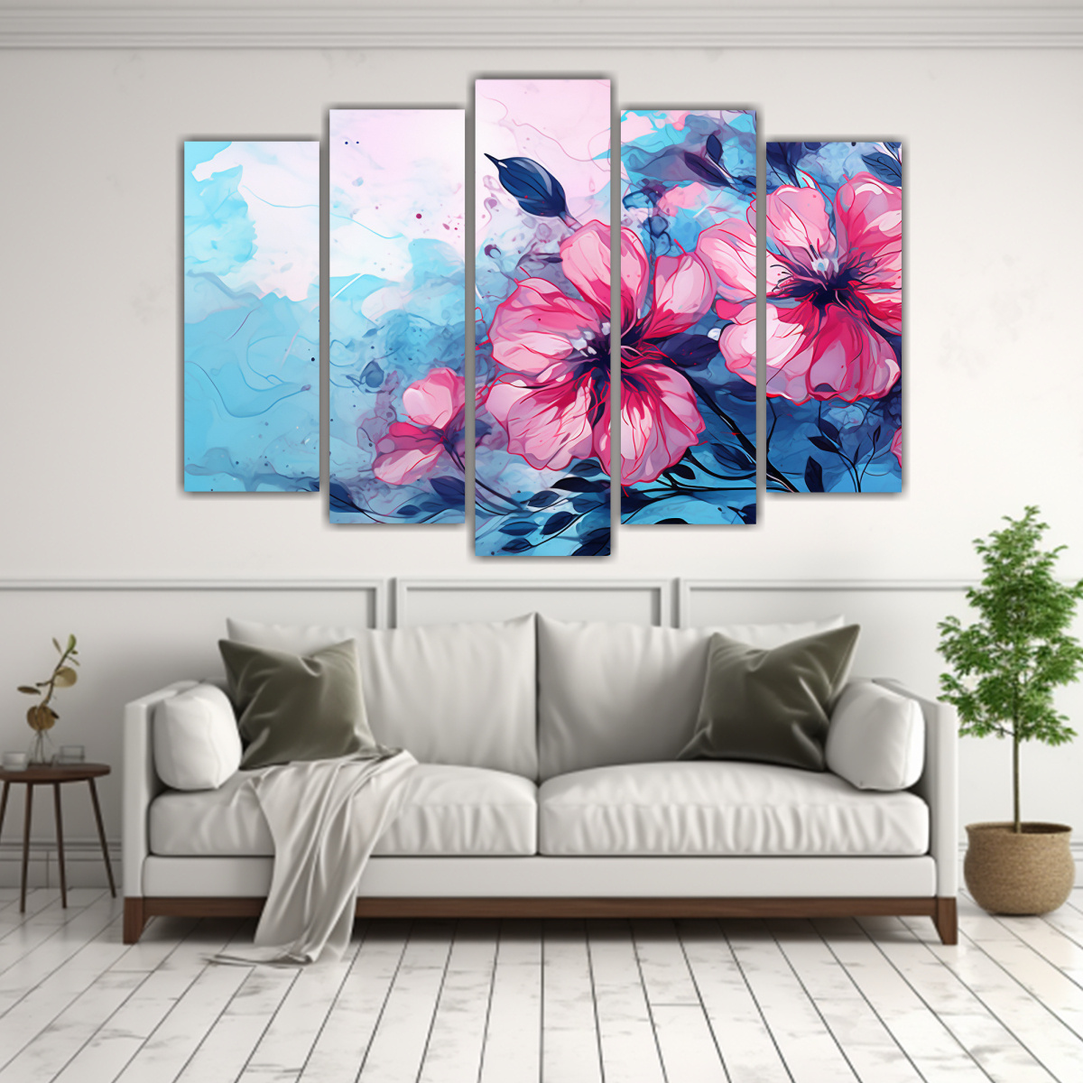 Cinco Telas Bastidor Decoración Poder Rosa Y Azul Atmosfera Neonoir